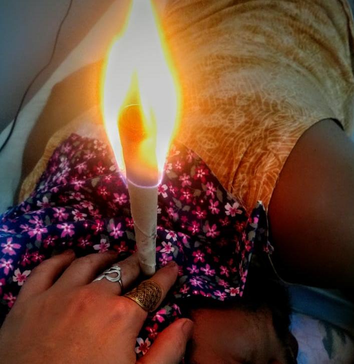 Coloca a parte mais fina do cone na entrada do ouvido e, em seguida, acende-se a outra extremidade. Assim que o fogo consome todo o oxigênio contido no interior do cone, inicia-se um suave processo de sucção, onde se pode ouvir pequenos estalinhos durante a sessão.